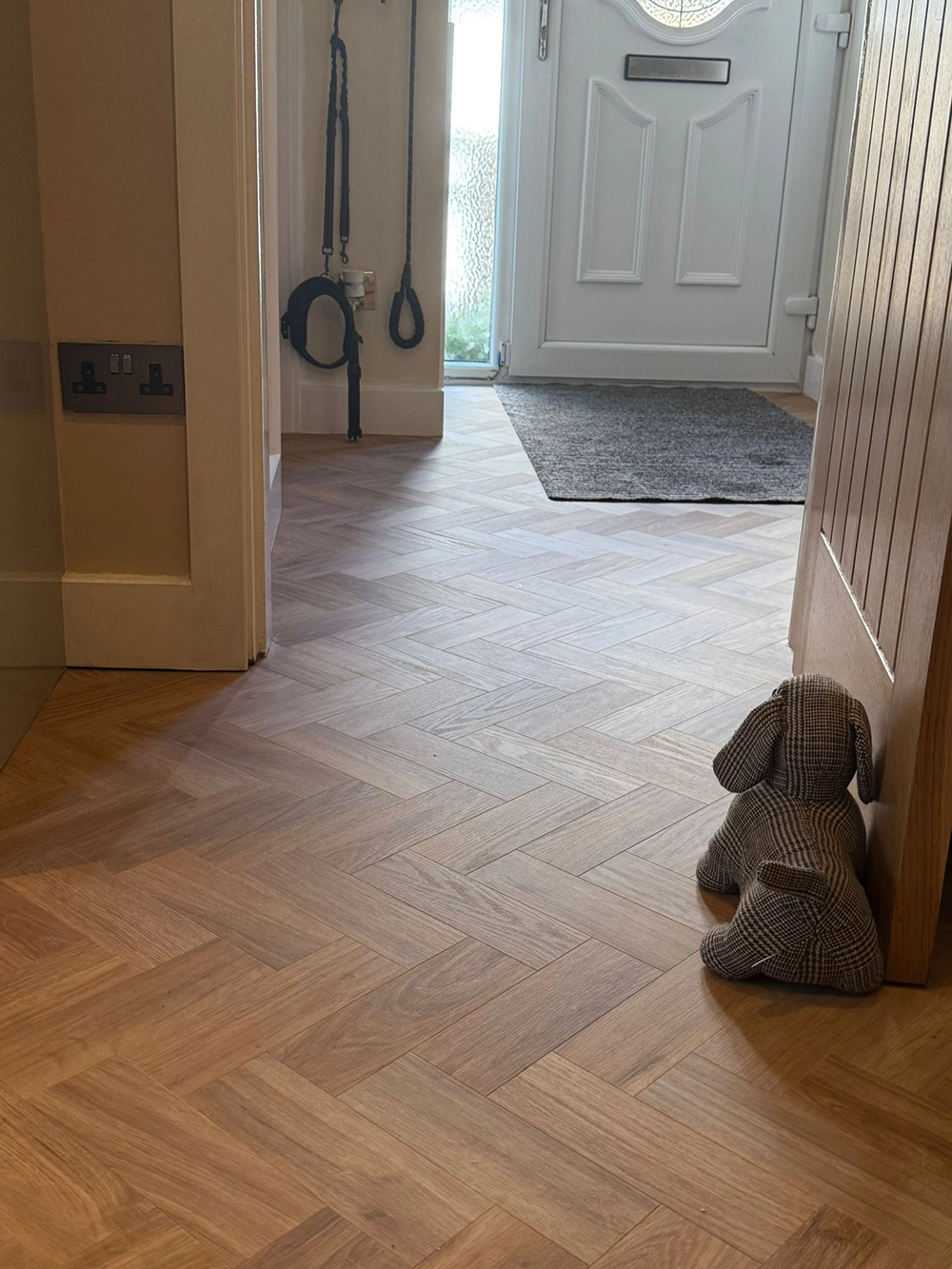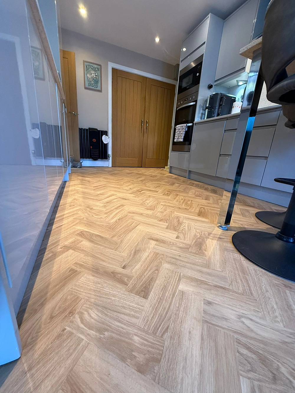 Stylish Herringbone LVT Installation in Huddersfield Kitchen and Entrance